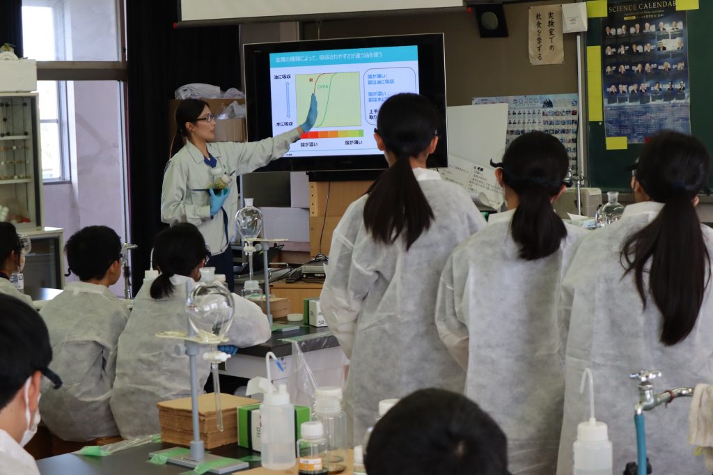 今年度も、日立一中の1年生を対象に「銅の溶媒抽出実験」を体験していただきました。