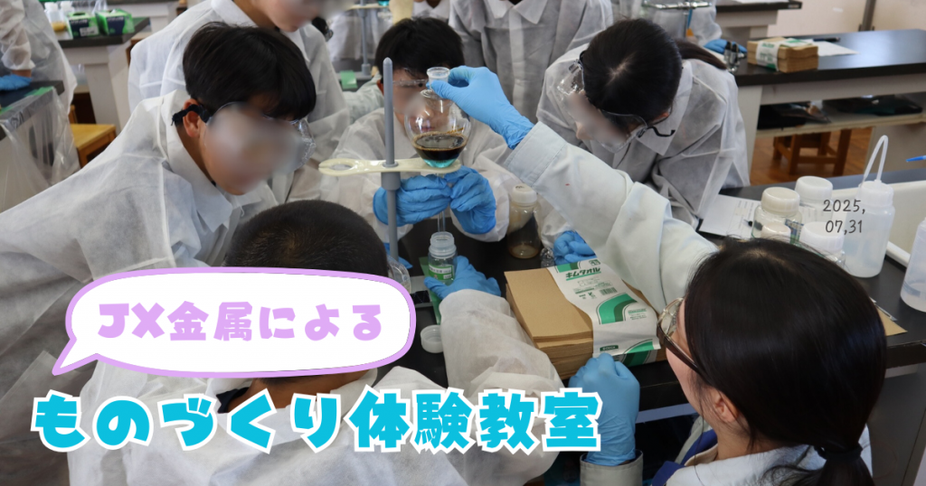 JX金属株式会社にご協力いただくものづくり体験教室は、昨年に引き続き2回目となります。